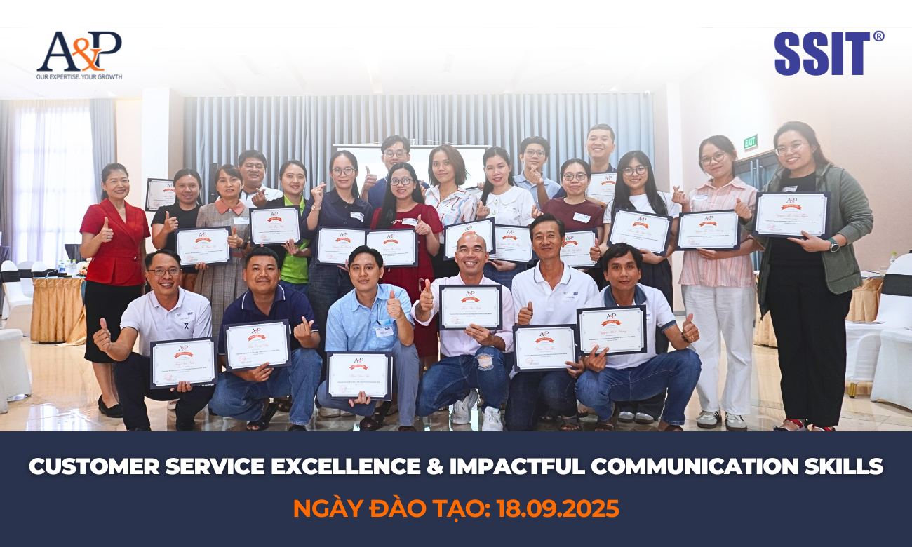 Với mục tiêu nâng cao năng lực phục vụ khách hàng và tạo ra giá trị khác biệt trong từng điểm chạm dịch vụ, A&P Việt Nam rất vinh dự đồng hành cùng SSIT triển khai chương trình “Customer Service Excellence & Impactful Communication Skills” vào ngày 18.09.2025.