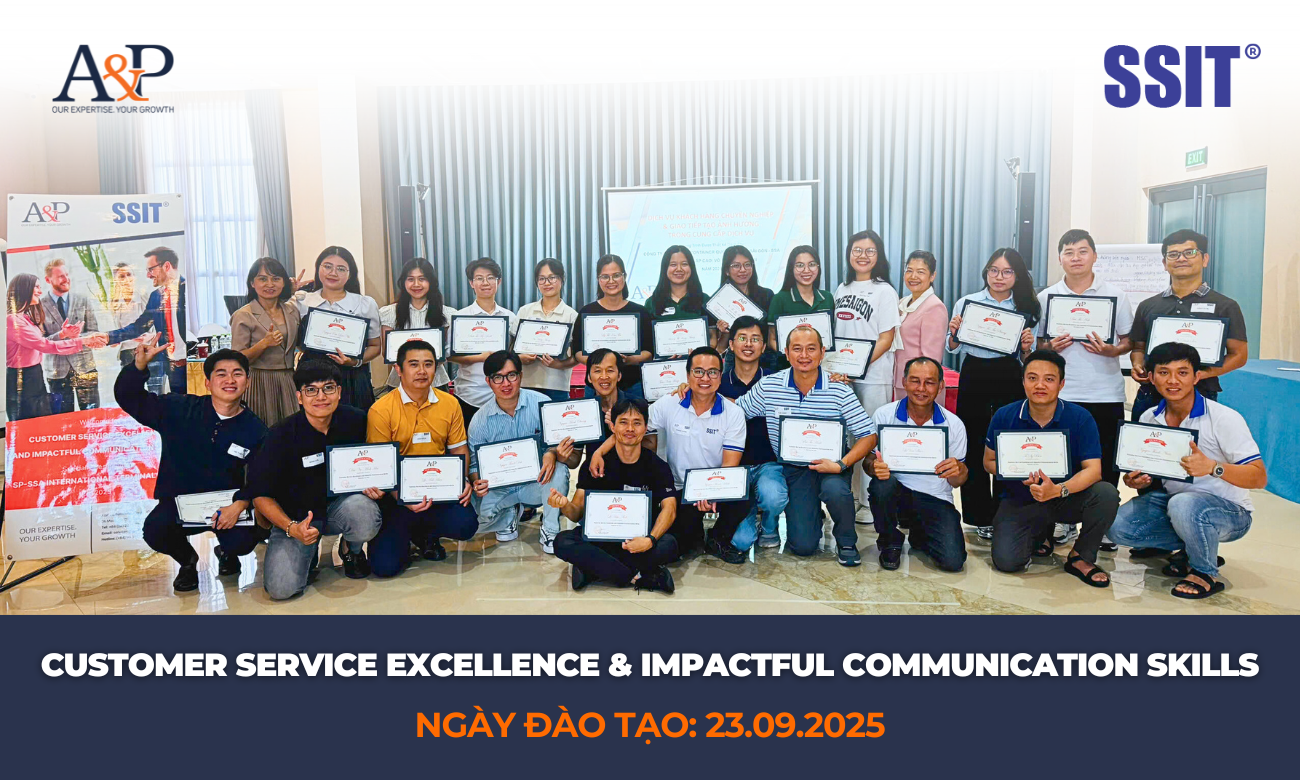 A&P Việt Nam xin gửi lời cảm ơn đến SSIT đã tiếp tục tin tưởng và lựa chọn chúng tôi là đối tác đào tạo trong hành trình nâng cao năng lực dịch vụ khách hàng. Chúng tôi tin rằng chương trình ngày 23.09.2025 sẽ mang đến thêm nhiều chuyển biến tích cực, giúp đội ngũ SSIT phát triển mạnh mẽ hơn nữa về tư duy dịch vụ, khả năng giao tiếp và phong thái chuyên nghiệp.