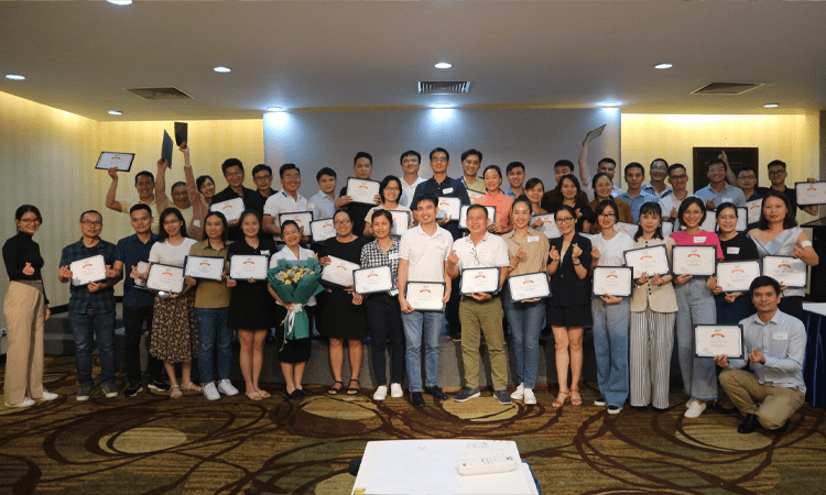 Cô Thanh Loan cũng đã trao bằng chứng nhận hoàn thành tham gia khóa học với các Anh Chị. Tin rằng, với những kiến thức mà anh chị đã học được qua chương trình sẽ áp dụng tốt vào trong công việc của mình. Hiểu rõ hơn về cách quản lý, đào tạo theo nhiều tình huống khác nhau.